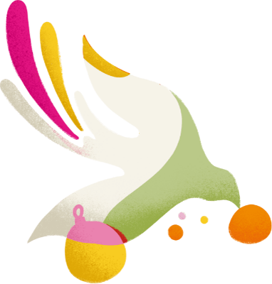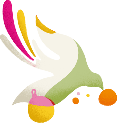 ホリデーパッケージのフルーツや花、平和の象徴の鳩やハートなど、さまざまなモチーフは、