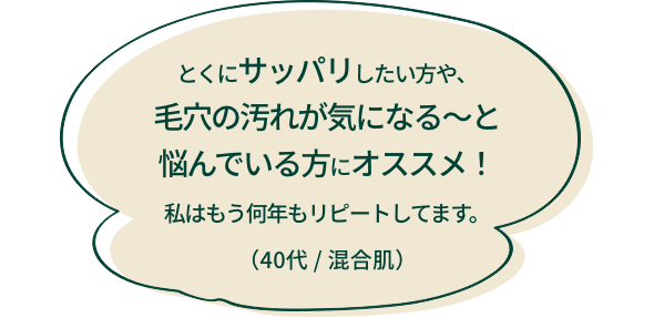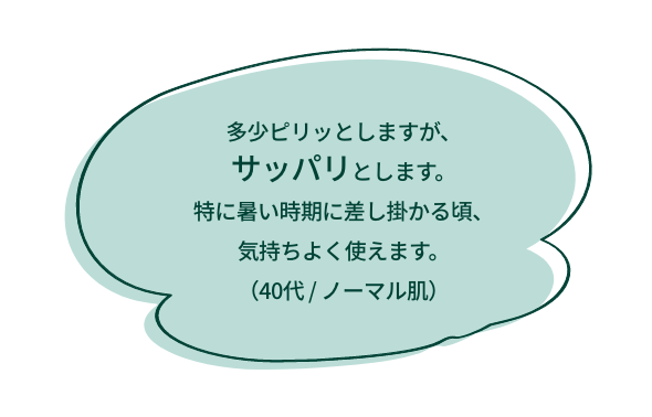 クールな感触で肌を引き締めながら、マットで透明感*のある肌に導くふきとり化粧水。みずみずしいうるおいで肌をフレッシュに整え、ヘルシーでテカリのないさらりとした肌に導きます。96%自然由来成分配合。